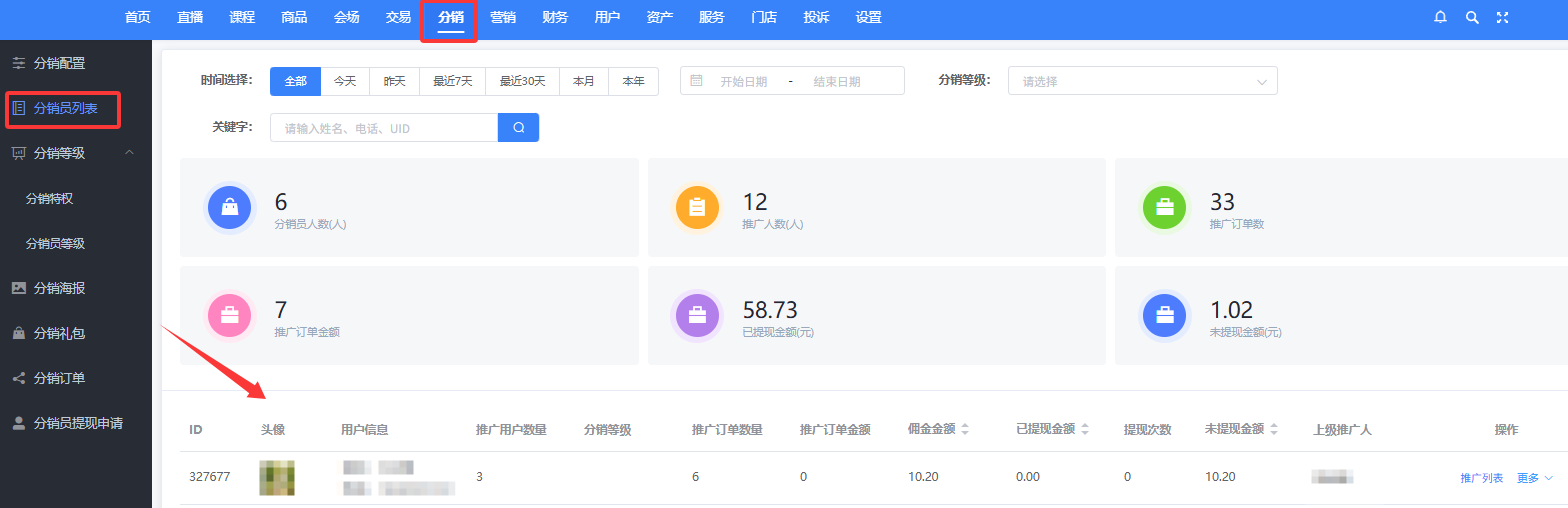 位置:平台后台>分销>分销员列表